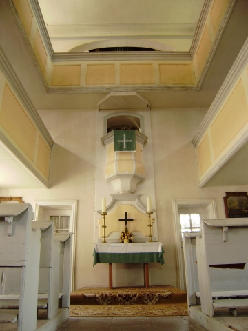 ist. Ab 1734 werden hier Kanzel, Altar und Orgelgehäuse vom