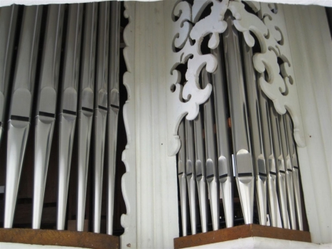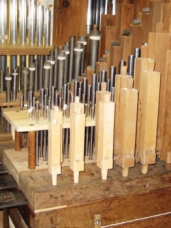 Pfeifenwerk aus Holz und Metall nach der Restaurierung